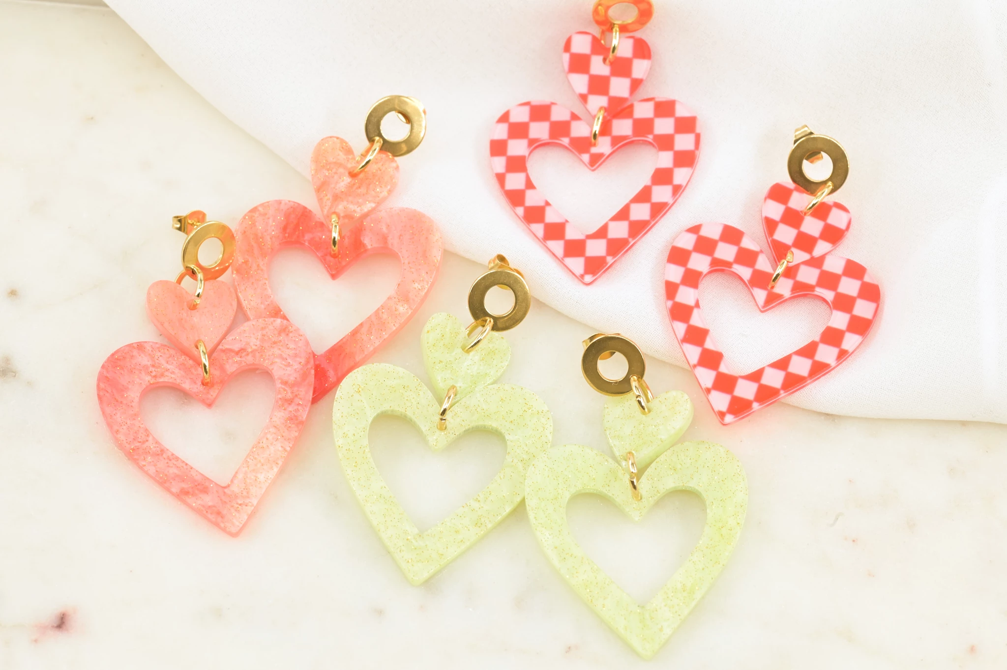 Deze rode glitter oorbellen brengen de lente in huis. Zo leuk, zo vrolijk. We hebben deze oorbellen ook in appelgroen en rood/wit geblokt. Welke vind jij het leukst?